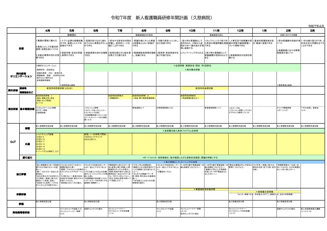 2025年度 新人看護職員研修年間計画(久慈病院)(PDF)