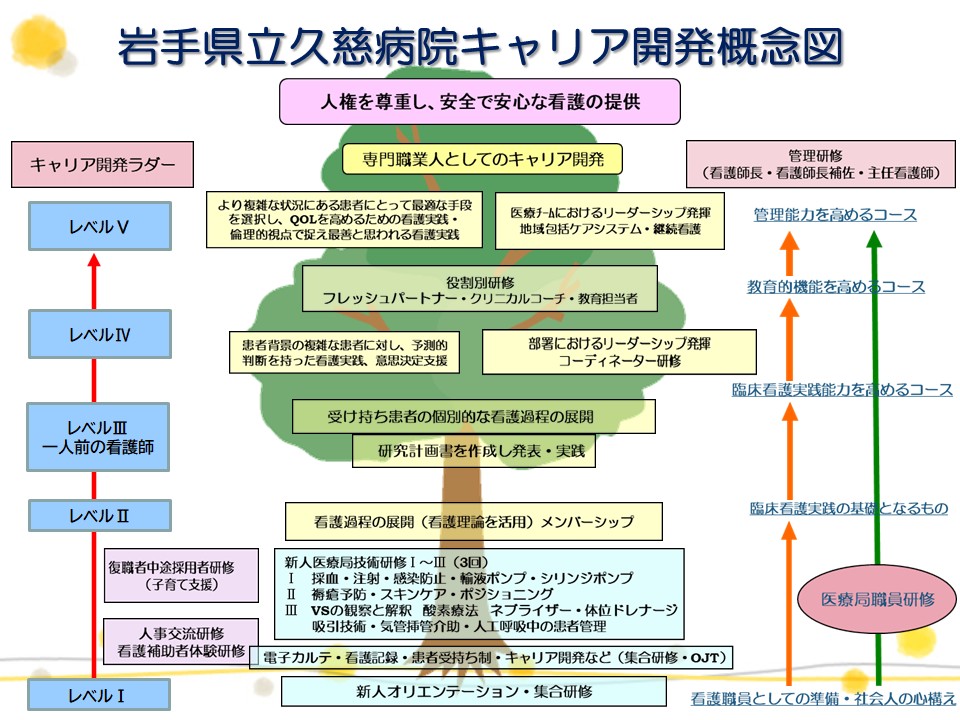 - 岩手県立病院看護科キャリア開発ガイドラインに基づき職員研修を実施しています。